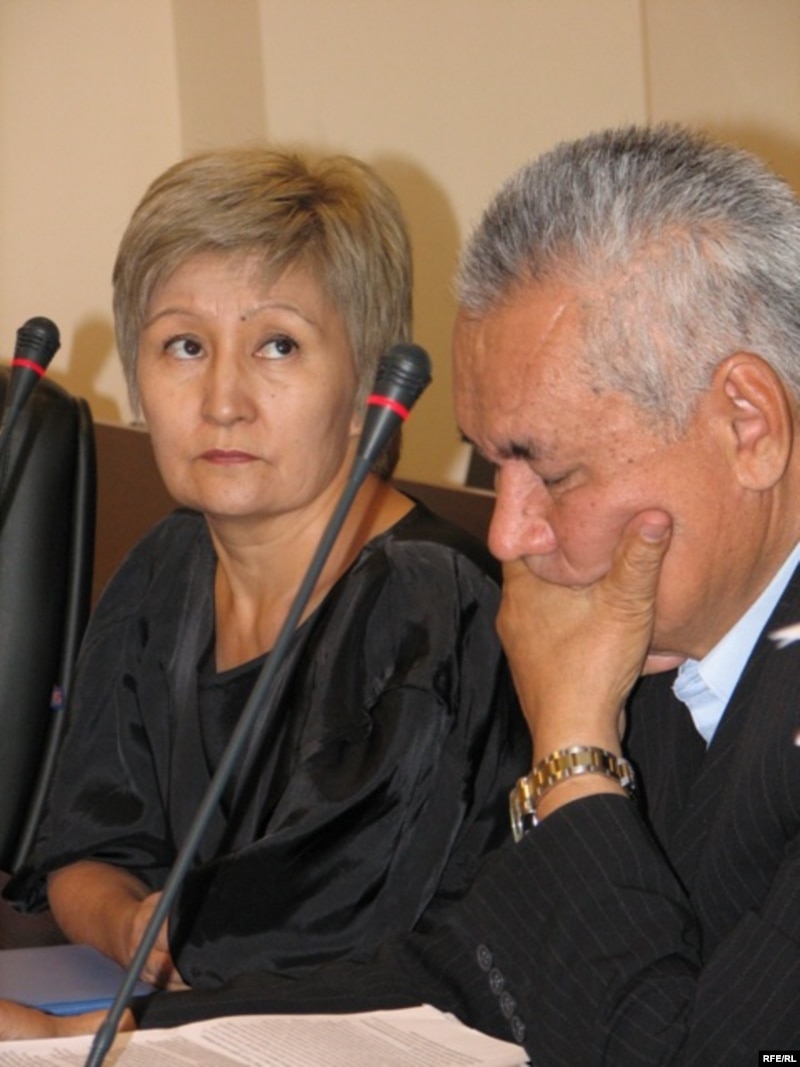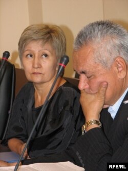 Раушан Есергепова, жена осужденного независимого журналиста Рамазана Есергепова, и Утеген Ихсанов, юрист издательской компании «Жулдыз». На заседании надзорной коллеги Верховного Суда. Астана, 13 августа 2009 года
