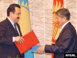 Премьер-министр Казахстана Карим Масимов и премьер-министр Кыргызстана Алмазбек Атамбаев. Бишкек, 11 июля 2007 года.
