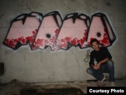 На сайте Ерлан разместил фото, на котором он изображен со своими настенными произведениями, сделанными в Москве. Он так и назвал эти рисунки «Дебют в Москве».