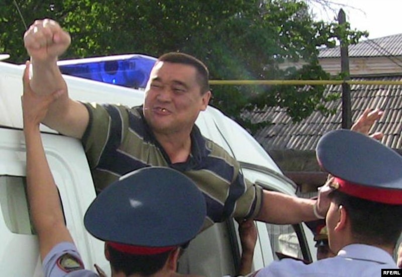 Рамазан Есергепов, осужденный на три года тюрьмы главный редактор независимой газеты «Алма-Ата Инфо», в момент доставки его в здание суда в день оглашения приговора. Тараз, 8 августа 2009 года.