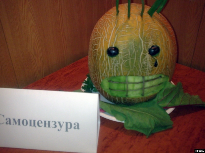 Блюдо под названием «Самоцензура» на акции протеста на тему «Язык как орган и его применение в условиях современного Казахстана». Талдыкорган, август 2009 года.