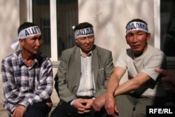 Активист оппозиции Есенбек Уктешбаев (в центре) рассказывает о порядках, царящих в административной тюрьме. Алматы, 11 мая 2010 года.
