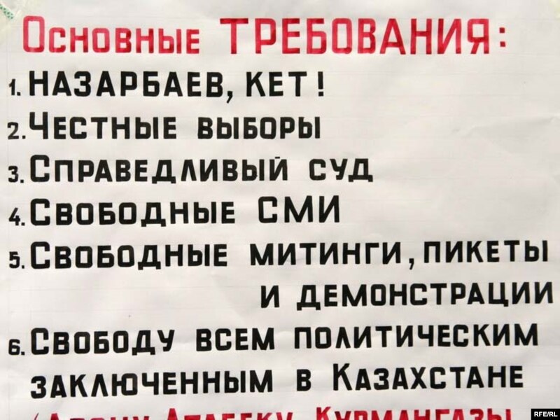 Главным требованием участников голодовки является отставка президента Казахстана Нурсултана Назарбаева.