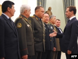 Президент России Дмитрий Медведев с министрами обороны стран - участников ШОС. Москва, 29 апреля 2009 года.