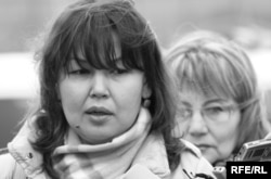 Джамиля Джакишева (слева) и Сара Сагиндыкова (справа), жены осужденных по делу "Казатомпрома". Астана, 26 марта 2010 года.