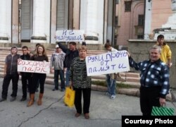 Участники акции протеста против уничтожения архитектурных памятников истории. Шымкент, 26 октября 2010 года.