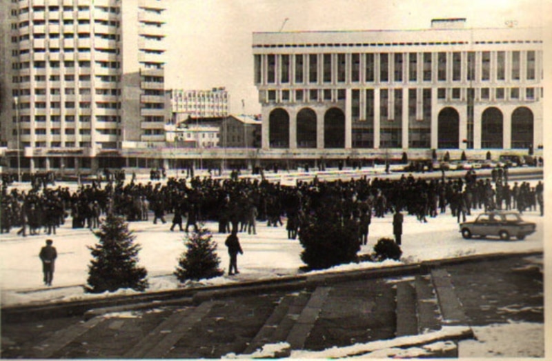 Демонстрация казахской молодежи 17 декабря 1986 года в Алматы. Фотокопия из Центрального государственного архива Алматы.
