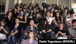 Студенты Международной академии бизнеса перед просмотром фильма "Аллажар" о Декабрьских событиях 1986 года в Алматы. Алматы, 21 апреля 2011 года.