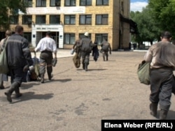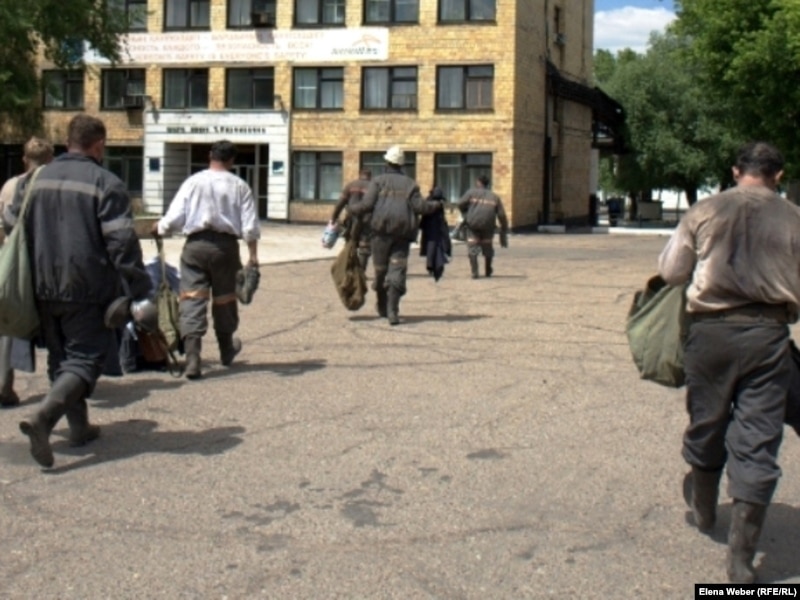 Шахтеры идут по территории шахты имени Кузембаева. Сарань, Карагандинская область, 24 июня 2010 года.