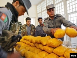 Силы безопасности проверяют пакеты с опиум, конфискованные в ходе операции в Герате. 30 марта 2010 года.