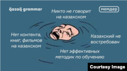 — Неготовность власти продвигать казахский язык в той мере, в какой он станет таким же обязательным, как и русский язык в Казахстане. Представители высшего эшелона власти в Казахстане — в основном русскоязычные казахи, которые, возможно, опасаются давления России. Также сами русскоязычные в стране боятся потерять свое привилегированное положение, потому что они полноценно владеют только одним языком — русским.