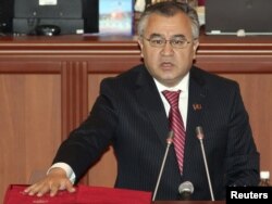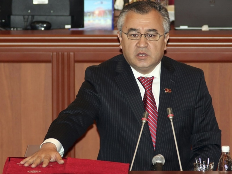 Омурбек Текебаев, лидер партии «Ата-Мекен», принимает присягу на первом заседании парламента Кыргызстана нового созыва. Бишкек, 10 ноября 2010 года.