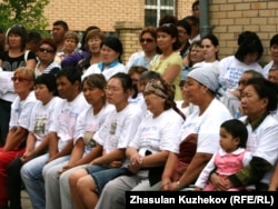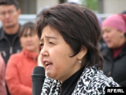 Зауреш Батталова, бывший сенатор, лидер кампании "За достойное жилье!", выступает на акции протеста дольщиков. Астана, 6 сентября 2009 года.