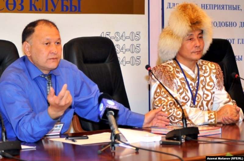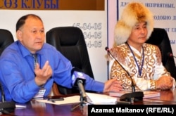 Разработчик и организатор проекта «Каражорга – самый лучший танец» Манарбек Ермуханов (слева) и руководитель творческого коллектива «Каражорга» Жамали Диканулы (справа). Атырау, 21 сентября 2010 года.