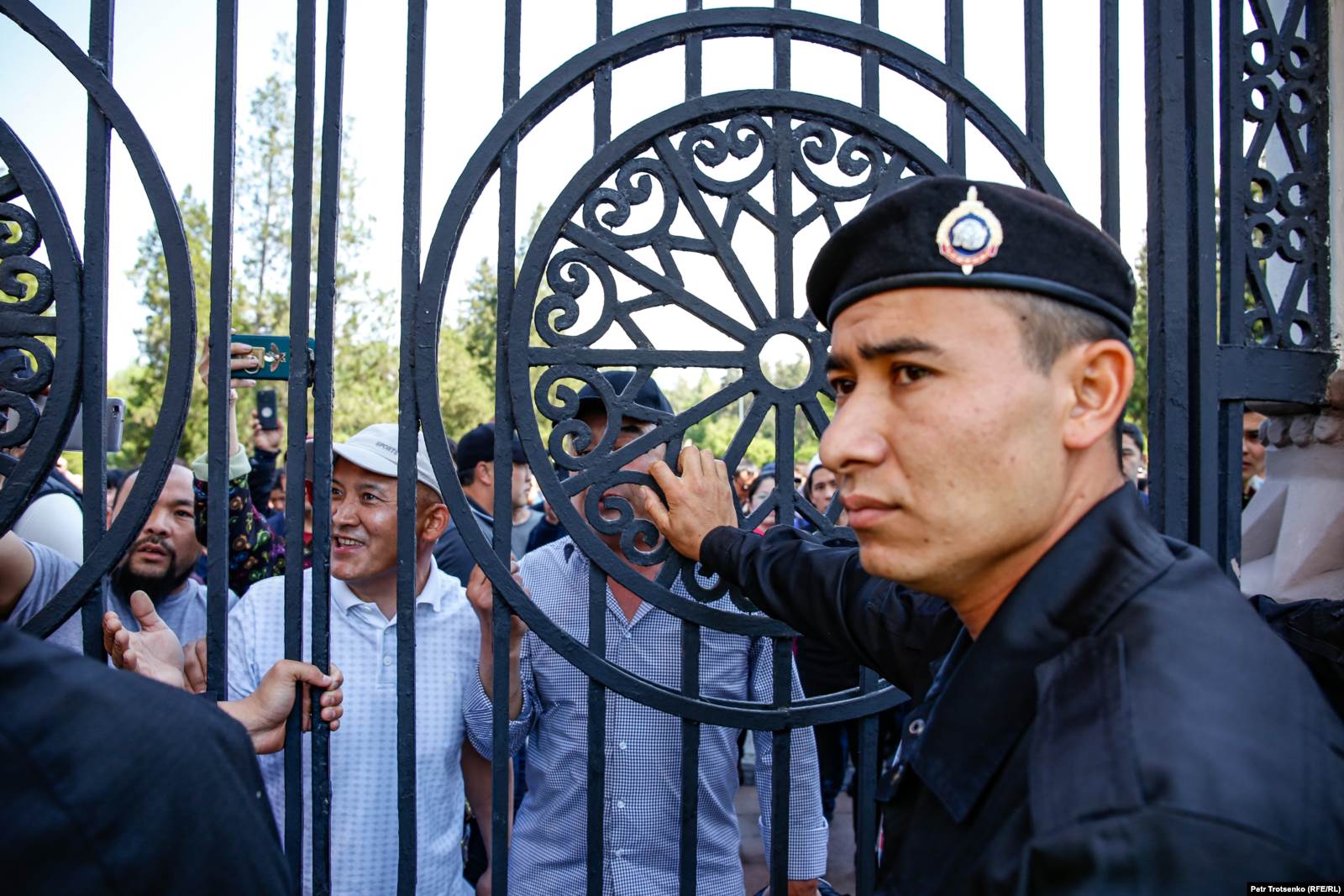 Митингующие, немного потолкавшись, продолжили выступать: против президента Касым-Жомарта Токаева, экс-президента Нурлсутана Назарбаева, переименования столицы из Астаны в Нур-Султан.