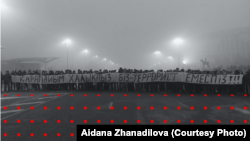 В тот день сотни человек мирно стояли на площади Республики. О погромах, которые были накануне, напоминали тлеющее здание акимата, разгромленная резиденция президента, разбитые машины. Люди разных возрастов составляли на бумаге требования к властям — отставка президента Касым-Жомарта Токаева, уход из власти его предшественника Нурсултана Назарбаева, отказ от ввода войск ОДКБ, которые были приглашены Астаной в разгар беспорядков. У монумента Независимости горел костёр, на котором готовили пищу. Среди стоявших там была и Нуралия.