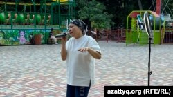 Парк «Кен Баба» в Шымкенте. Восемь вечера. Многолюдно. Женщина средних лет устанавливает тяжелые колонки и настраивает музыкальную аппаратуру на площадке между аттракционами. «Раз-два, раз-два», —проверяет она свой микрофон.