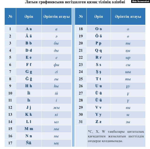 В 2006 году прежний президент Казахстана Нурсултан Назарбаев впервые сообщил о переходе казахского языка на латиницу. В 2017 году он поручил правительству разработать алфавит. Изначально планировалось перейти на латиницу в 2025 году, но позже в правительстве заявили, что это произойдет в период с 2023 по 2031 год. На сегодняшний день ни один из вариантов алфавита не утвержден. Обсуждаемый сейчас состоит из 31 буквы. На публичное обсуждение выносились четыре варианта, некоторые из них после критики со стороны общественности не утвердили. Согласно плану правительства, на латиницу перейдут школы с казахским языком обучения. Документы на государственном языке также будут писаться на латинице. В стране также продолжат использовать кириллицу.