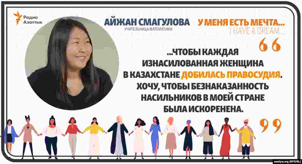 Азаттык предложил казахстанским женщинам продолжить известную фразу I have a dream... К 8 марта мы получили от 8 женщин самые разные ответы. Но все они объединены стремлением к справедливости, свободе выбора, равноправию.