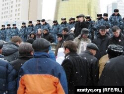 Полиция преградила дорогу к резиденции президента Казахстана Акорде участникам акции, требовавшим встречи с Нурсултаном Назарбаевым. Астана, 28 марта 2011 года.