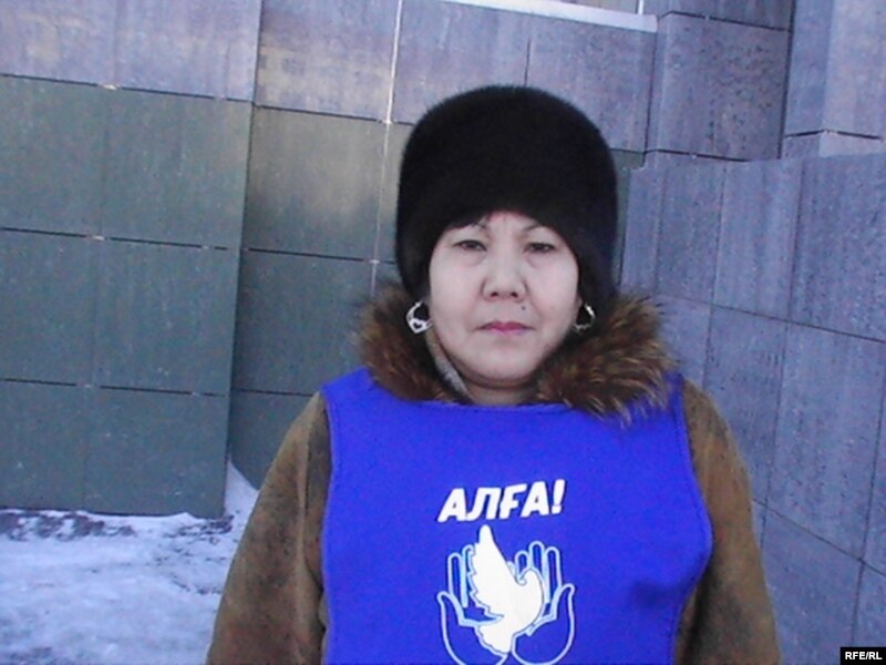 Эльвира Жаксылыкова, мать шестерых детей, безработная. С 2006 года она активистка партии «Алга».
