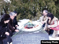 На могиле героини войны Алии Молдагуловой, которая погибла в 1944 году. Деревня Монаково Псковской области.