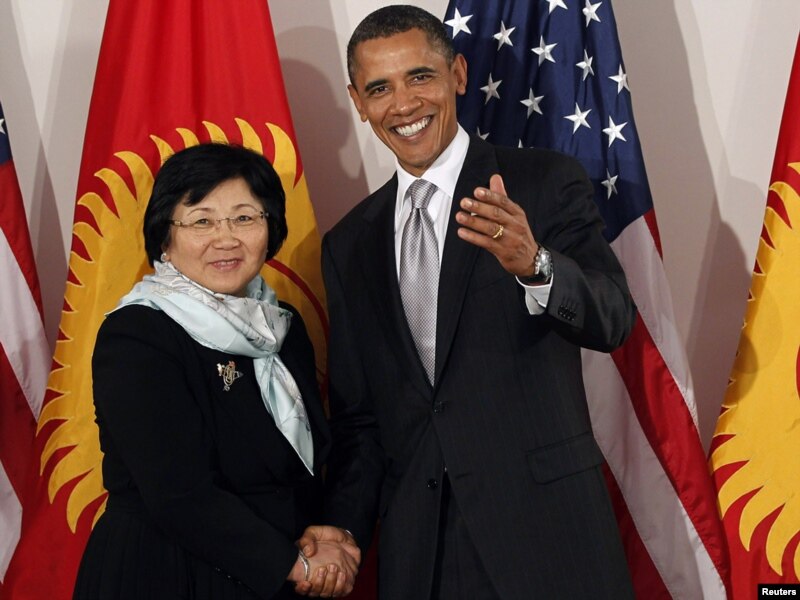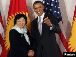 Президент США Барак Обама на встрече с президентом Кыргызстана Розой Отунбаевой в рамках сессии Генеральной Ассамблеи ООН. Нью-Йорк, 24 сентября 2010 года.