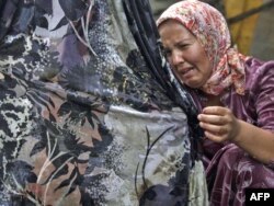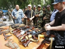Милиция проверяет оружие, предположительно использованное в ходе этнических столкновений и собранное в ходе рейдов. Ош, 24 июня 2010 года.