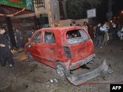 Сотрудники органов безопасности обследуют место взрыва, который осуществил террорист-смертник на переполненном стадионе. Пешавар,2008 год.