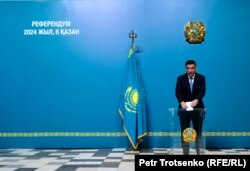 Корреспондент Азаттыка в Алматы побывал на участке № 350. Перед началом голосования прозвучал гимн Казахстана.