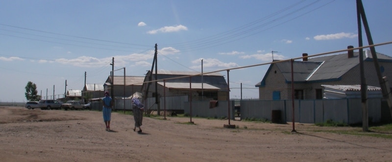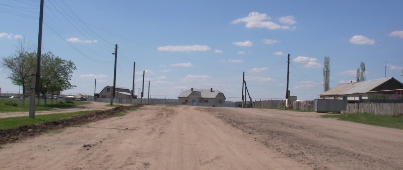 Улица, где живут родители Сабитбая Аманова. В центре – отчий дом Сабитбая Аманова. Сазды, 23 мая 2011 года.