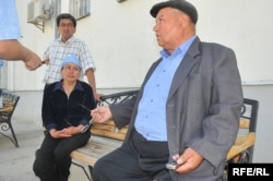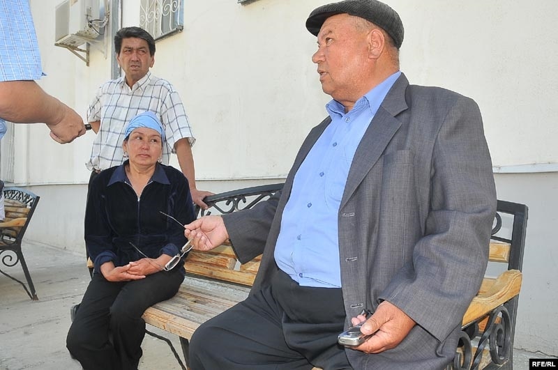 Слева направо: брат пострадавшего Кубайдолла Шолаков, жена пострадавшего Кабидоллы – Насихат Шолакова, брат пострадавшего Халидолла Шолаков возле областной больницы. Атырау, 26 мая 2009 года.