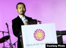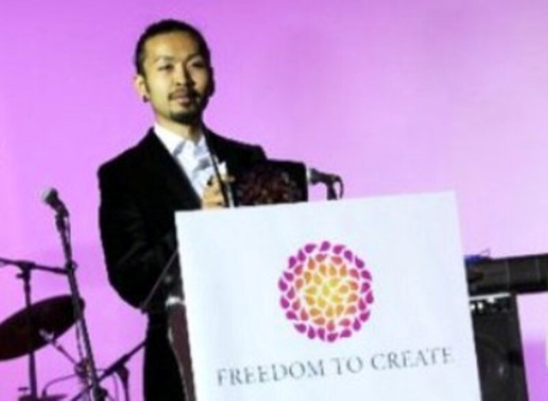 Аскар Айдархан, сын поэта-диссидента Арона Атабека, получает от имени отца премию Freedom to Create в номинации «Творец в заключении». Каир, 26 ноября 2010 года.