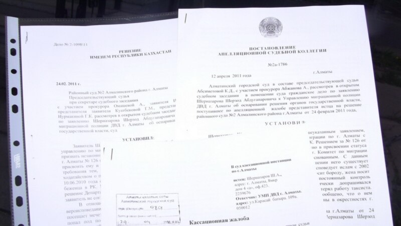 Копии судебных решений судов первой и второй инстанций об отказе в предоставлении статуса беженца Шерзоду Шерназарову и копия его жалобы в кассационный суд. Алматы, 4 мая 2011 года.