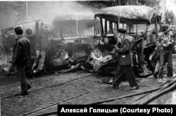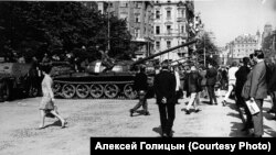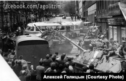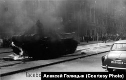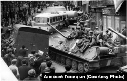 Русская редакция Азаттыка – Радио Свобода – с любезного разрешения Алексея Голицына впервые публикует эти уникальные фотографии. В альбоме не указаны точные даты снимков, но, судя по запечатленным на них событиям, все они сделаны в первый день после ввода войск, утром и днем 21 августа. Алексею Голицыну и Радио Свобода не удалось установить имя автора фотографий.