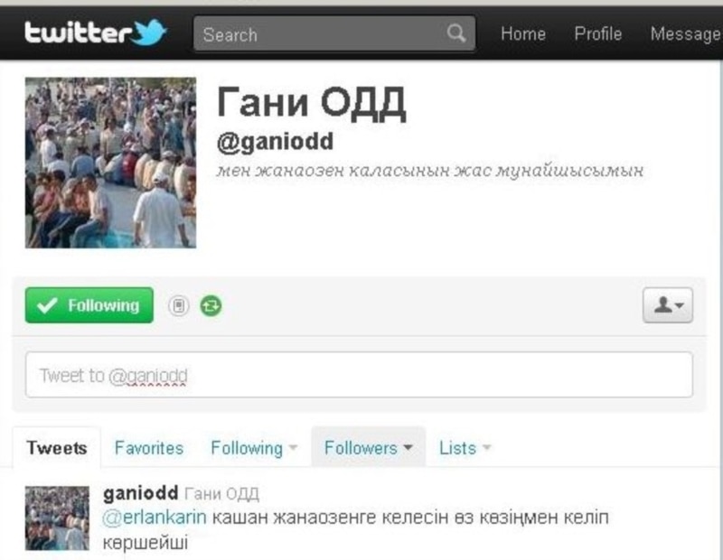 По его словам, проблемой для пользователей «Твиттера» среди бастующих нефтяников, которые в настоящее время просто бедствуют, является высокая стоимость Интернета и отсутствие компьютеров. Как говорит Жолдасбай Азаматов, поэтому многие из них пользуются мобильными телефонами, хотя и это может себе позволить далеко не каждый, так как возросла стоимость услуг некоторых операторов мобильной связи.