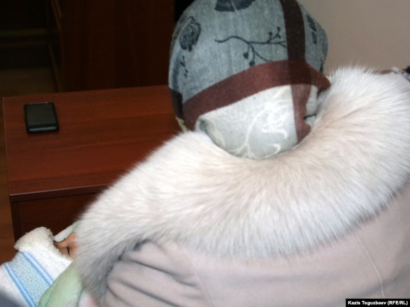 Жена одного из братьев Кулдошевых - узбекских беженцев-мусульман, со своим двухмесячным младенцем в суде. Алматы, 28 февраля 2011 года