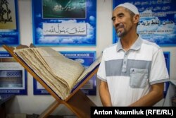 Зато учеников много у мастера каллиграфии. "Видели арабскую вязь на воротах Биби-Ханум? Это моя работа, – с гордостью рассказывает он про реконструкцию главной мечети Самарканда, которую Тамерлан построил после индийского похода. – Я сличал по старым фотографиям и восстанавливал только то, что мог подтвердить". – "А как вам работа остальных реставраторов?" – спрашиваю я. Почти все древние постройки в Самарканде и Бухаре реставрируются так, что старины практически не остается. "Это грустно", – задумчиво отвечает он и показывает огромный рукописный Коран, который он расписывает уже больше полугода. До окончания работы осталось страниц 70, после этого он хочет передать книгу музею в благодарность за мастерскую, в которой работает.