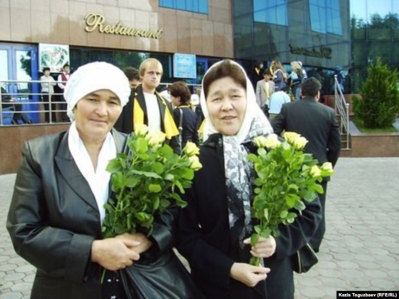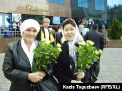 Алтынай Асанова (слева), мать Народной Героини Казахстана Ляззат Асановой, погибшей в 16-летнем возрасте во время Декабрьских событий 1986 года, Тохтар Рахметова (справа), вдова казахского диссидента Аркена Уака, репрессированного в связи с Декабрьскими событиями 1986 года. Алматы, 10 октября 2010 года.