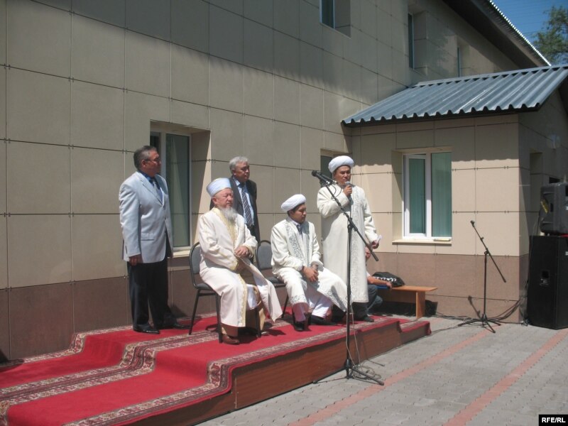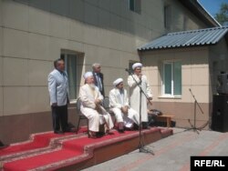 Лидеры исламского духовенства читают молитву в день открытия медресе "Абу Ханифа". Алматы, 10 августа 2009 года.