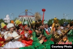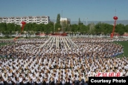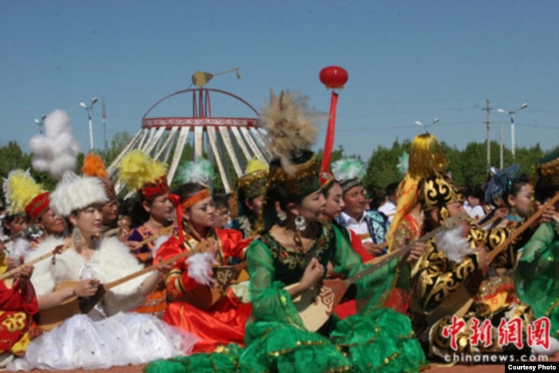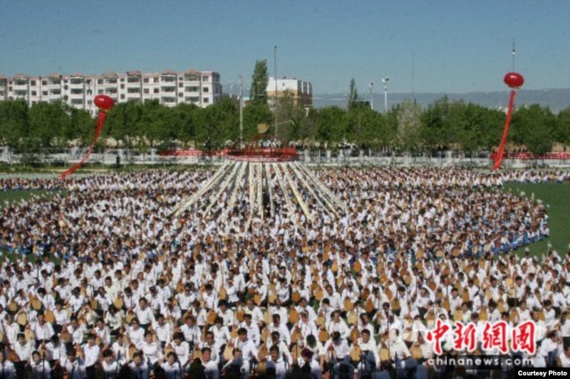 Казахи района Толы в Китае устанавливают рекорд массовой игры на домбре 30 мая 2010 года. Фото из сайта www.chinanews.com