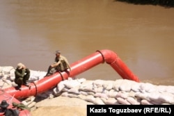 Поля, которые возделываются под выращивание сои, находятся примерно в 80 километрах к юго-востоку от Урджара. Там, где земля подходит к реке Урджар, установлен мощный насос, который качает воду для орошения полей. В этом месте корреспонденты нашего радио Азаттык встретились с несколькими рабочими, а также с одним из китайских специалистов.