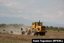 Трактор распахивает земли для посева сои. Урджарский район Восточно-Казахстанской области, 24 мая 2011 года.