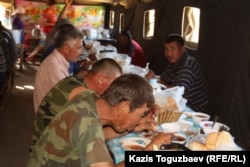 Обед в полевой столовой работников компании "Батуа". Урджарский район Восточно-Казахстанской области, 24 мая 2011 года.
