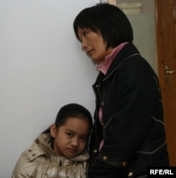 Жена и дочь Ермека Нарымбаева (слева - дочь Асем, справа - жена Зоя) в зале суда. Алматы, 14 мая 2010 года.