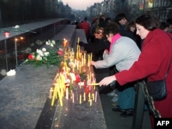 Cтуденты зажигают свечи в знак поддержки Вацлава Гавела на пост президента Чехии. Прага, 17 ноября 1989 года.