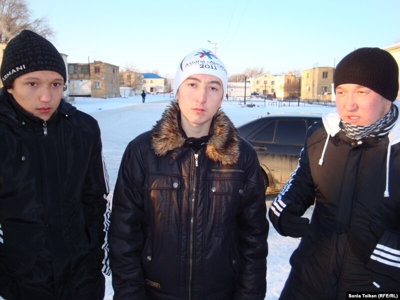 Слева направо: учащиеся третьего курса этого лицея Бердыбек Нарымбаев, Насиха Дауылбаев, Адилбек Байжуманов. 5 февраля 2011 года.