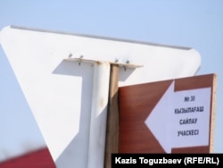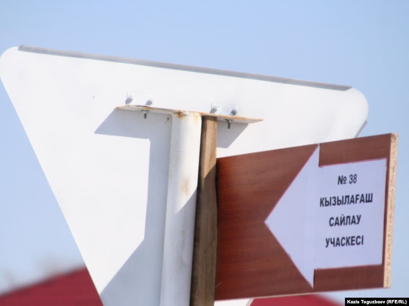 Сразу по приезде в Кызылагаш корреспонденты нашего радио Азаттык на междугородней трассе, проходящей через село, в буквальном смысле наткнулись на председателя участковой избирательной комиссии Адилгазы Байтумакова. Он оценивал, как его добровольные помощники только что установили знак, указывающий дорогу к избирательному участку.