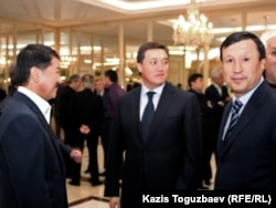 В Доме приемов (перед поминками по Владимиру Ни), слева-направо: Болат Утемуратов - бывший управляющий делами президента РК, Аскар Мамин - президент компании "Казахстан темир жолы", Адильбек Джаксыбеков - министр обороны РК. Алматы, 12 сентября 2010 года.